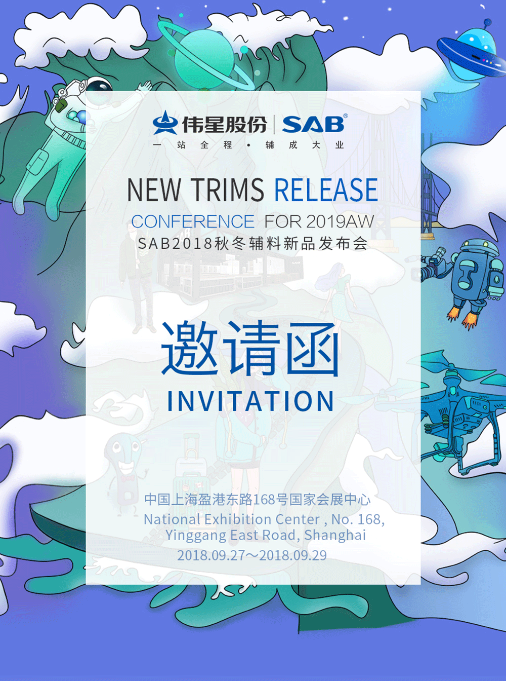 SAB2019秋冬辅料新品发布会 中国国际纺织面料及辅料(秋冬)博览会地址: 中国上海盈港东路168号国家会展中心 时间:2018.09.27~2018.09.29
